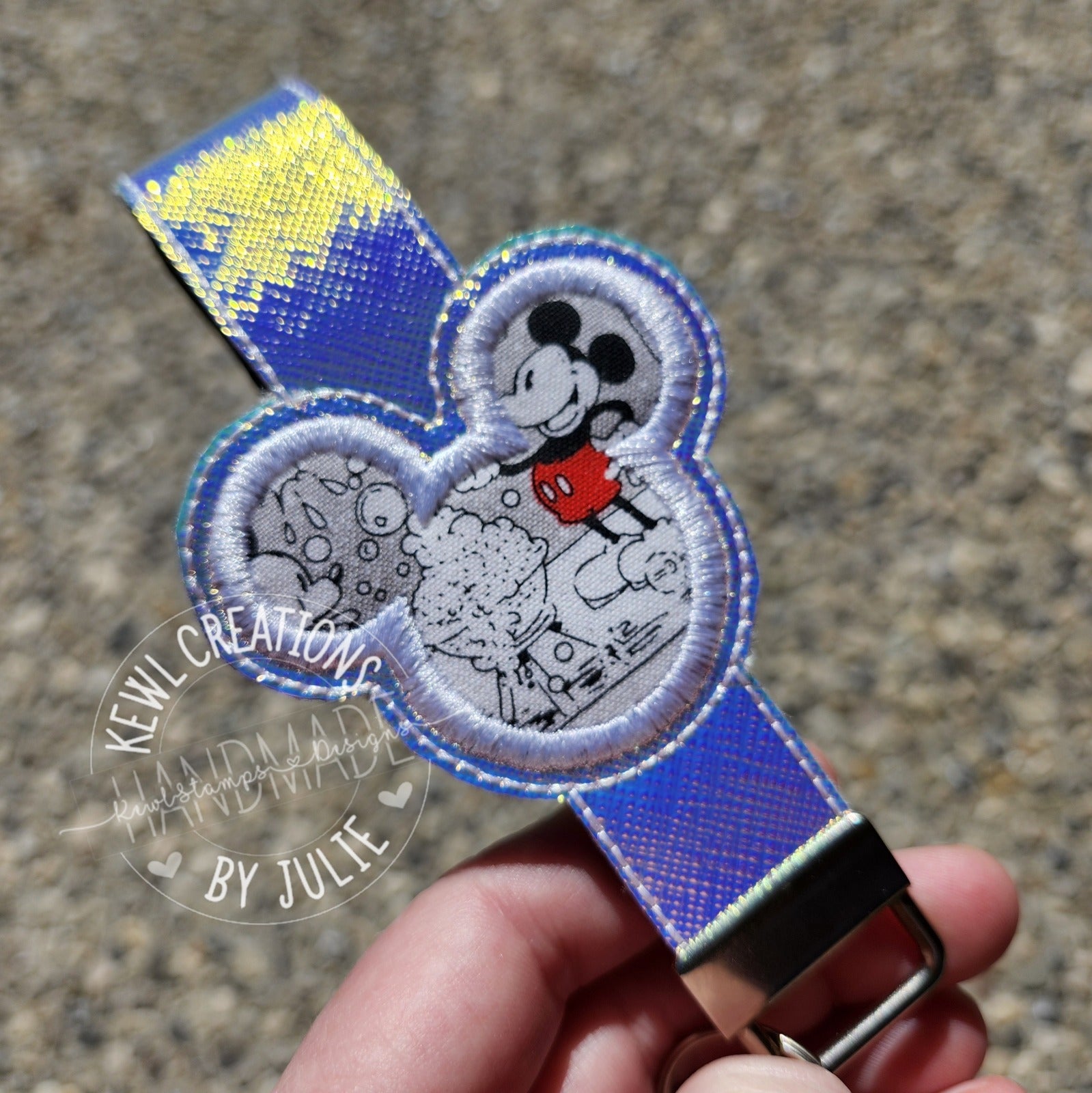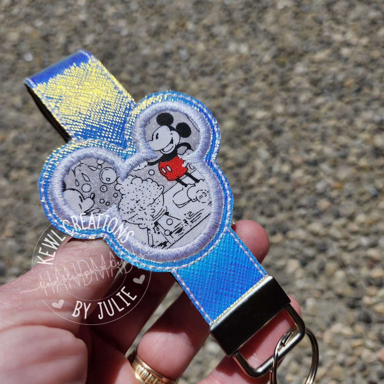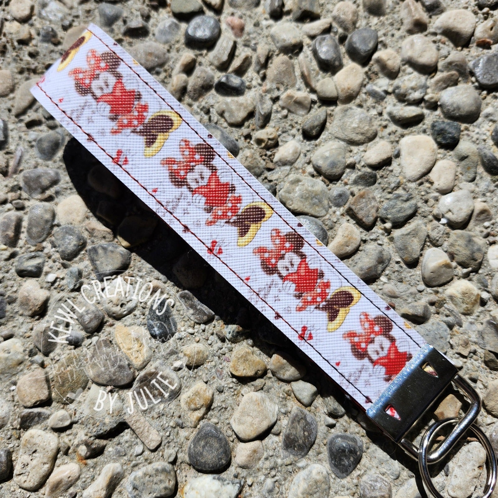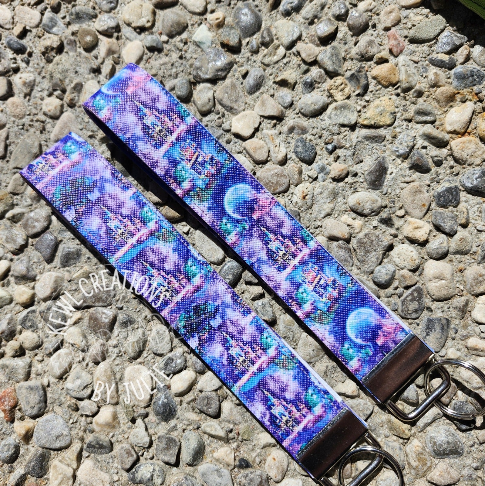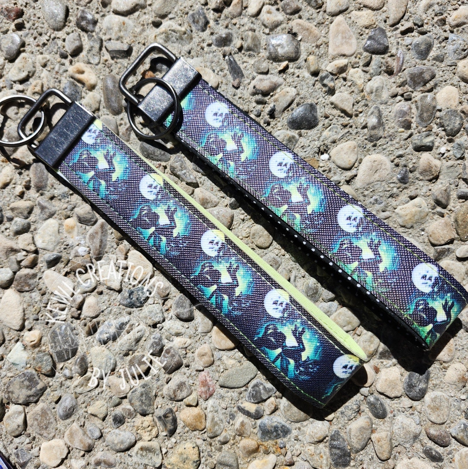 Wristlet, Key Ring, Phone Strap, Wallet, Hands Free Keychain, made with custom designed Cotton woven Fabric and Faux Leather vinyl.