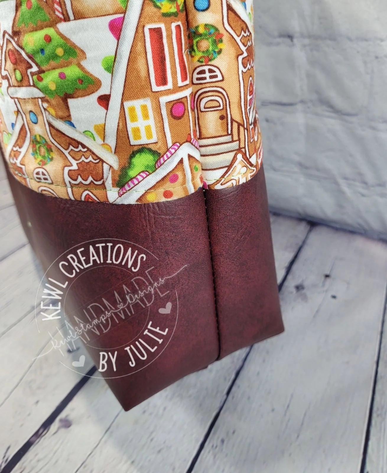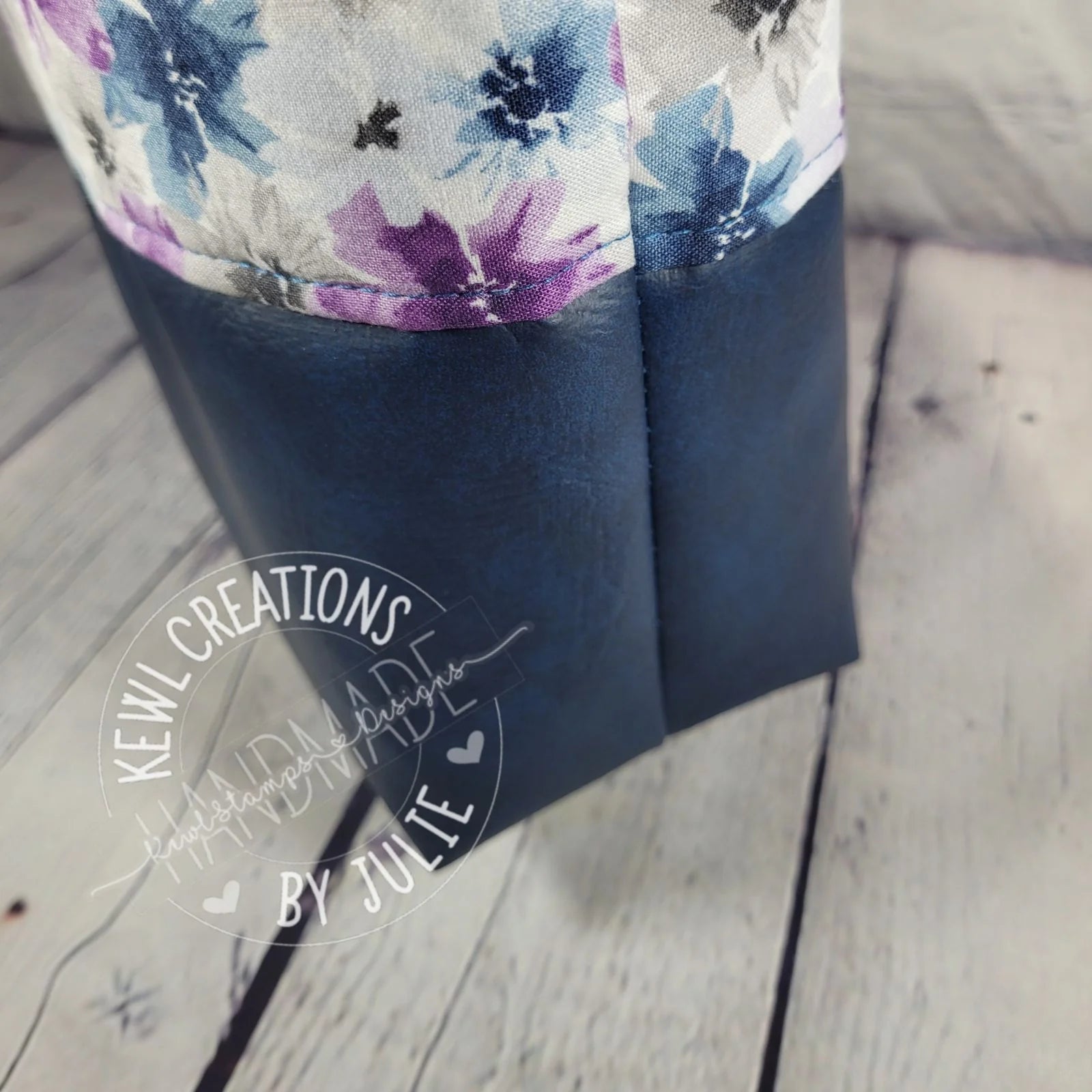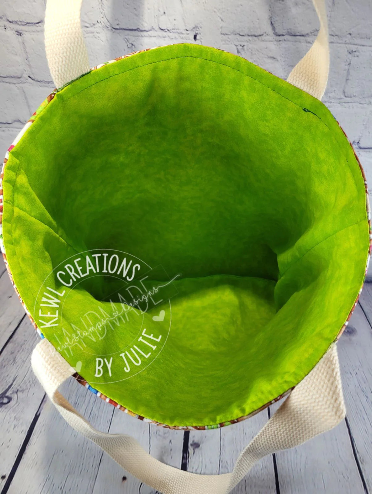 Exterior fabric is Cotton Woven interfaced with fusible fleece, boxed bottom is Marine Vinyl for extra durability.