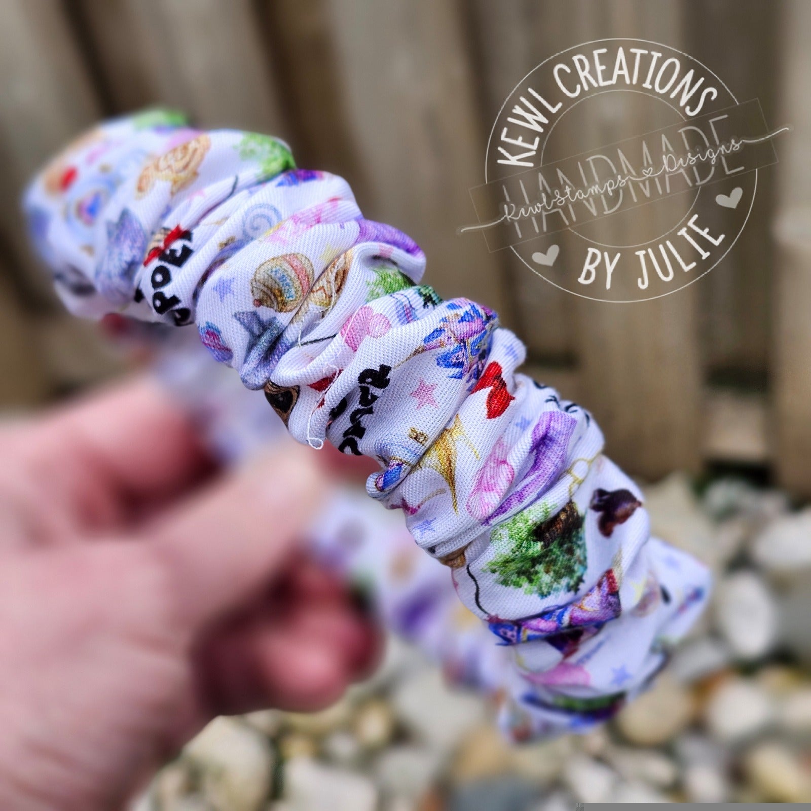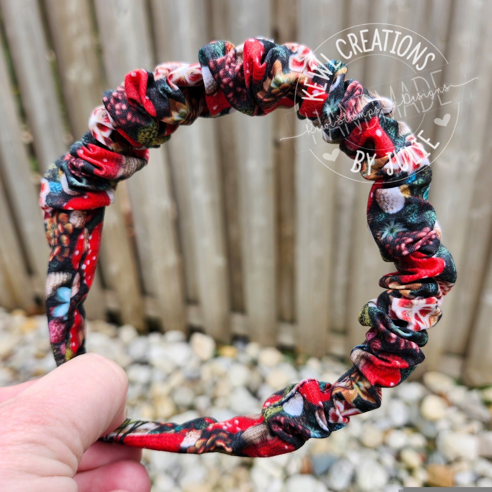 Materials: Cotton Woven Fabric, Satin covered Alice headband.