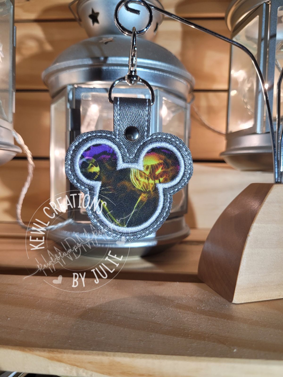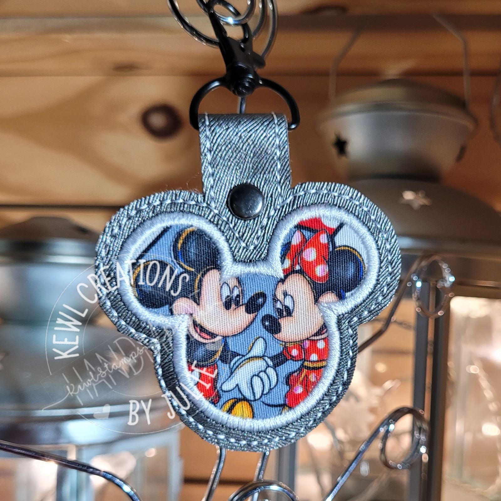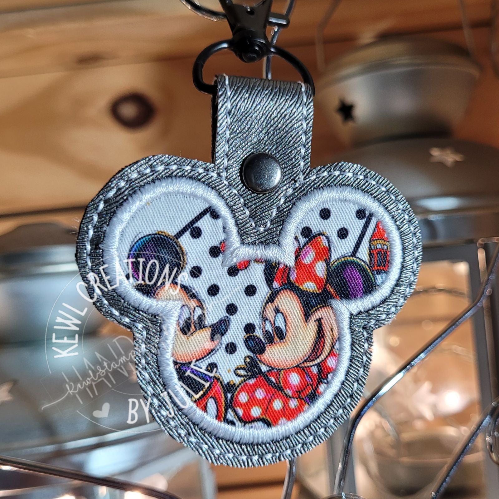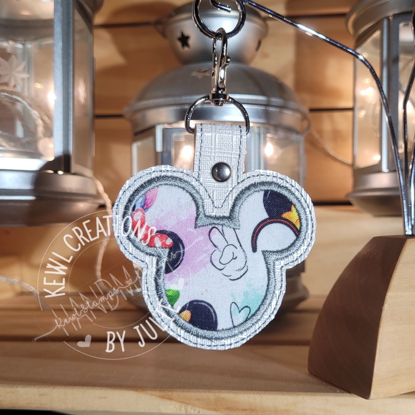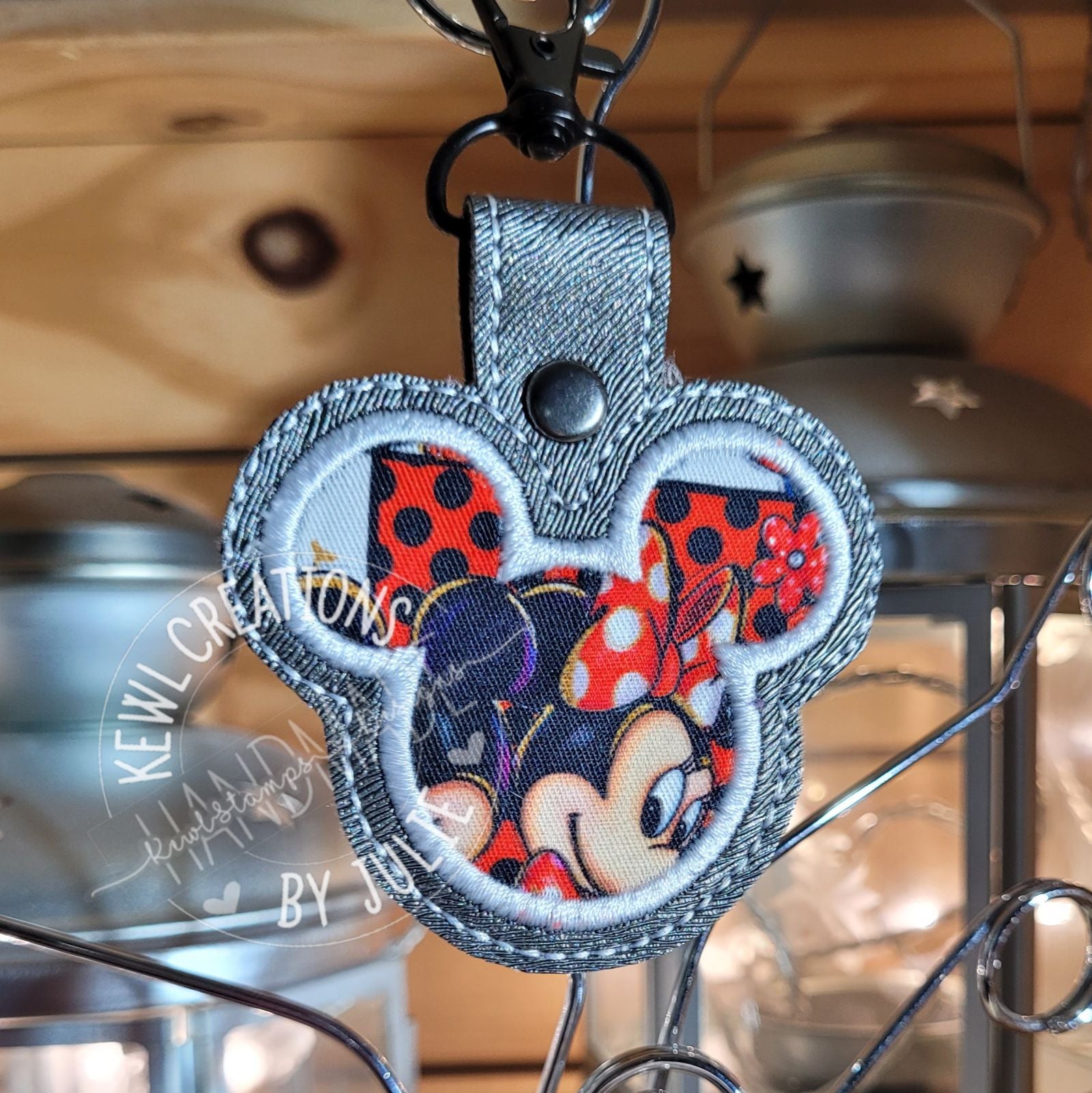 KeyChain, Key Fob, Swivel Clasp Embroidered SnapTab - Mouse shaped