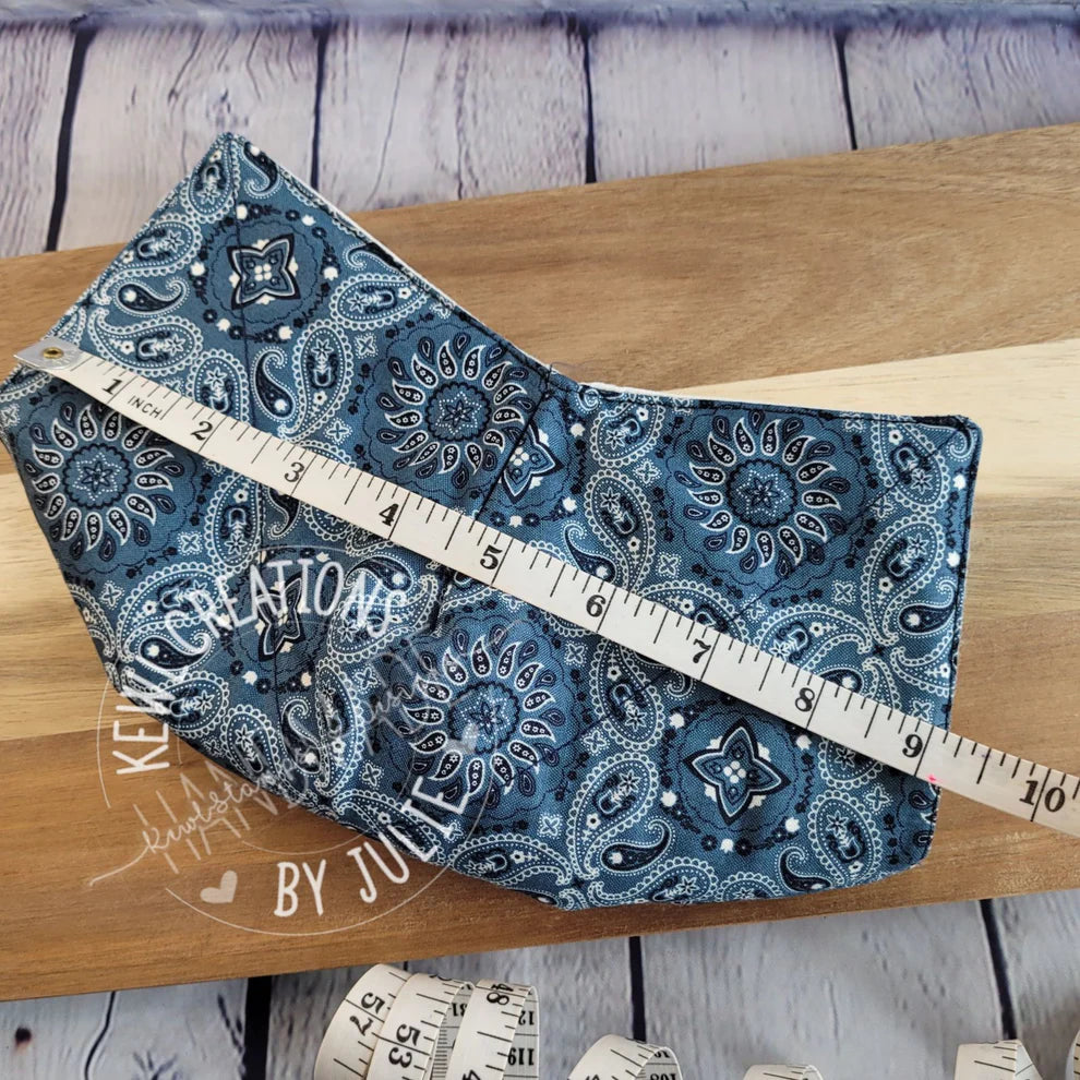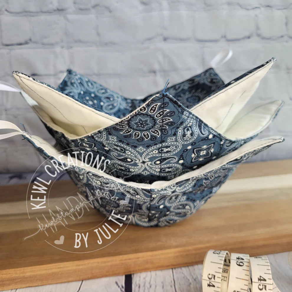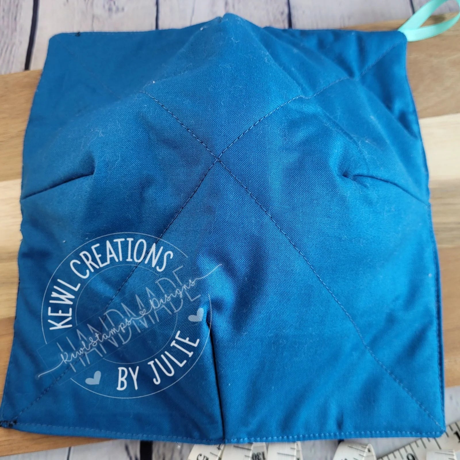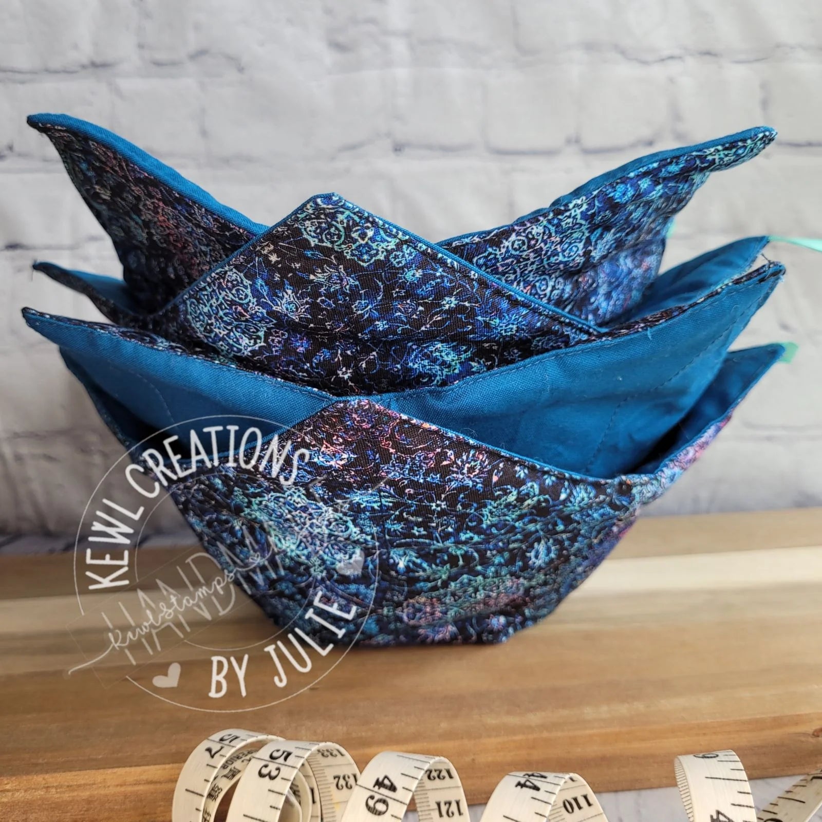 This is made from a 10.5 inch square of fabric. This size cozy fits a generous 7" bowl. Topstitched for durability. Fits almost every bowl from a soup bowl, cereal bowl, and salad bowls.