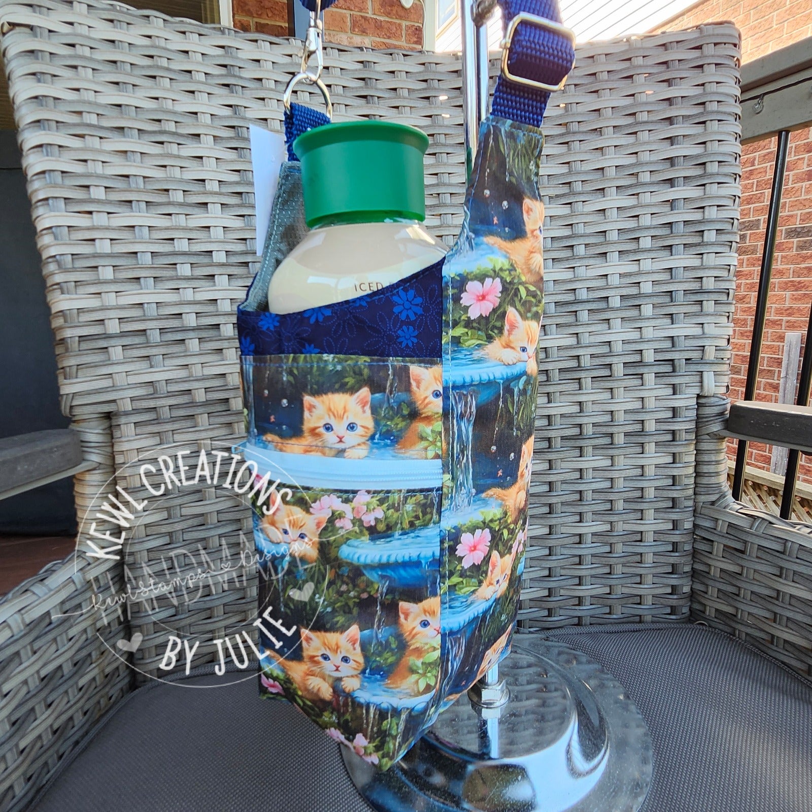 The crossbody water bottle sling bags are a great size and fit most water bottles including the Stanley (without the handle) or the Hydro Flask and cold cups from coffee shops!