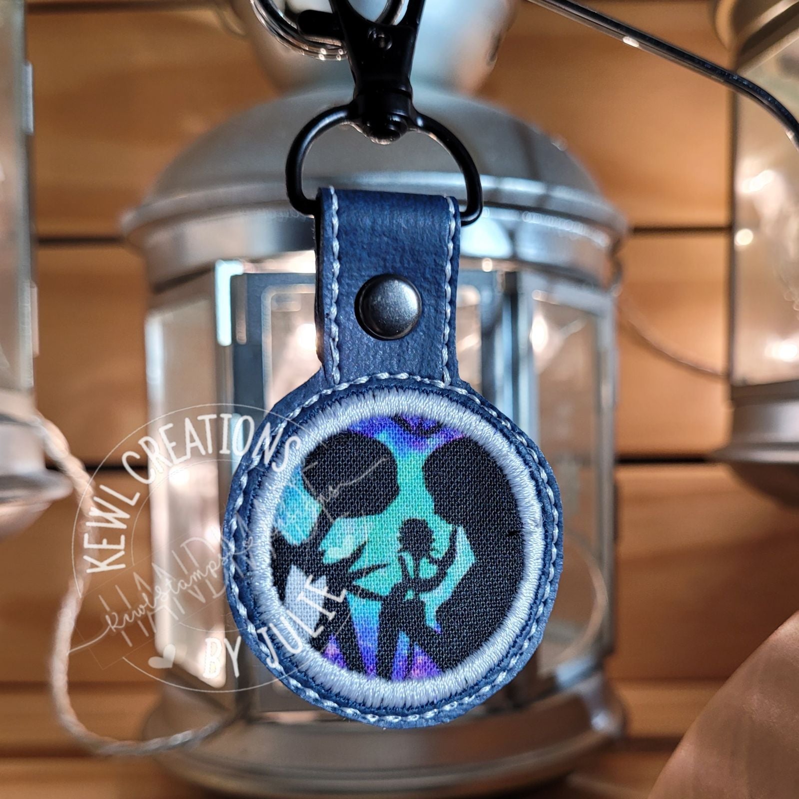 The keychain is made out of 2 layers of faux leather vinyl. The snap tab holds a swivel silver clasp and is secured with a double capped rivet.