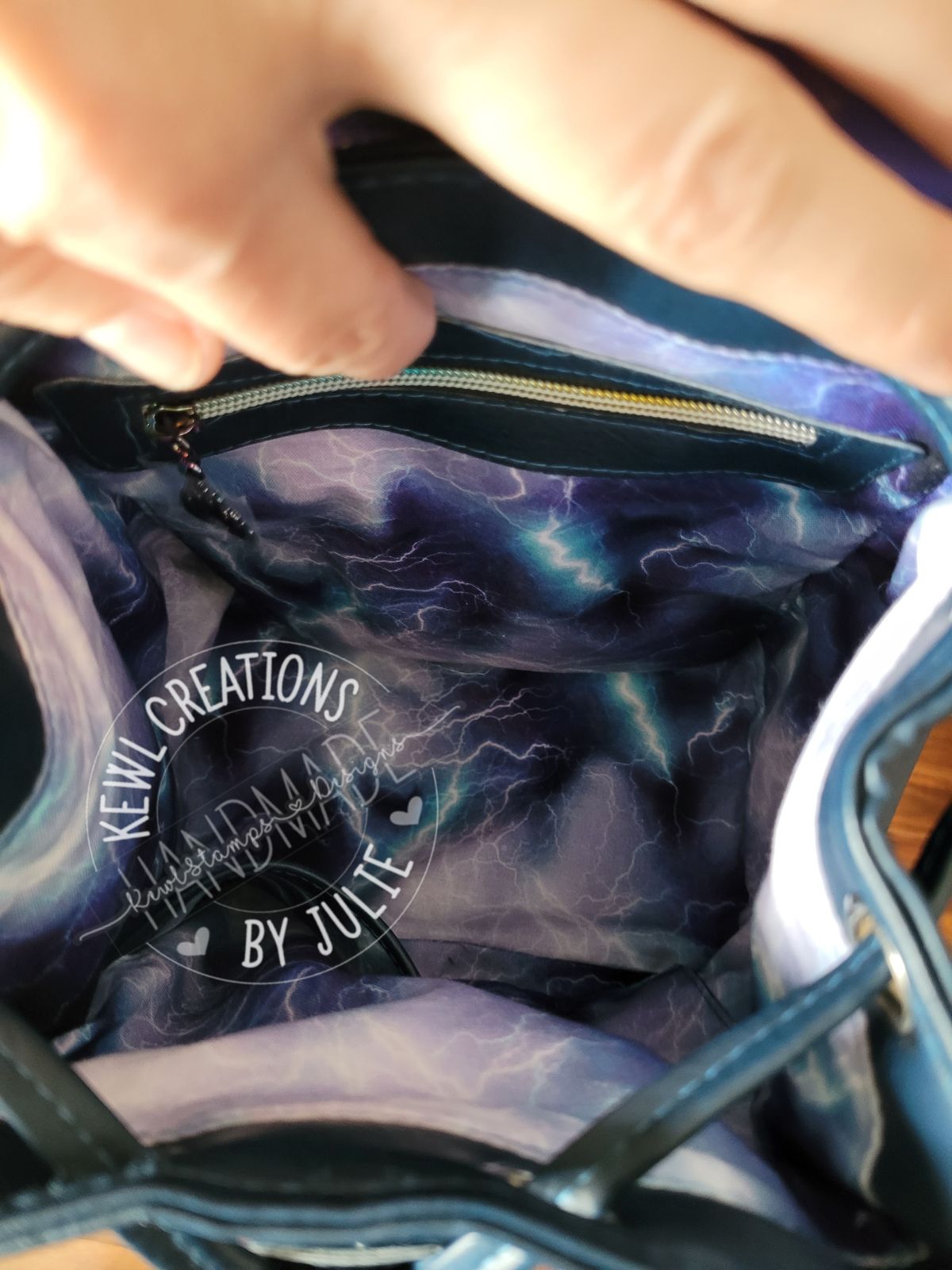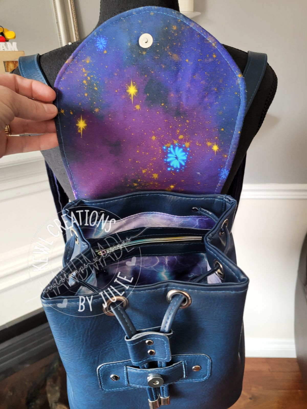 Materials: Faux leather, Nickle hardware, Cotton fabric