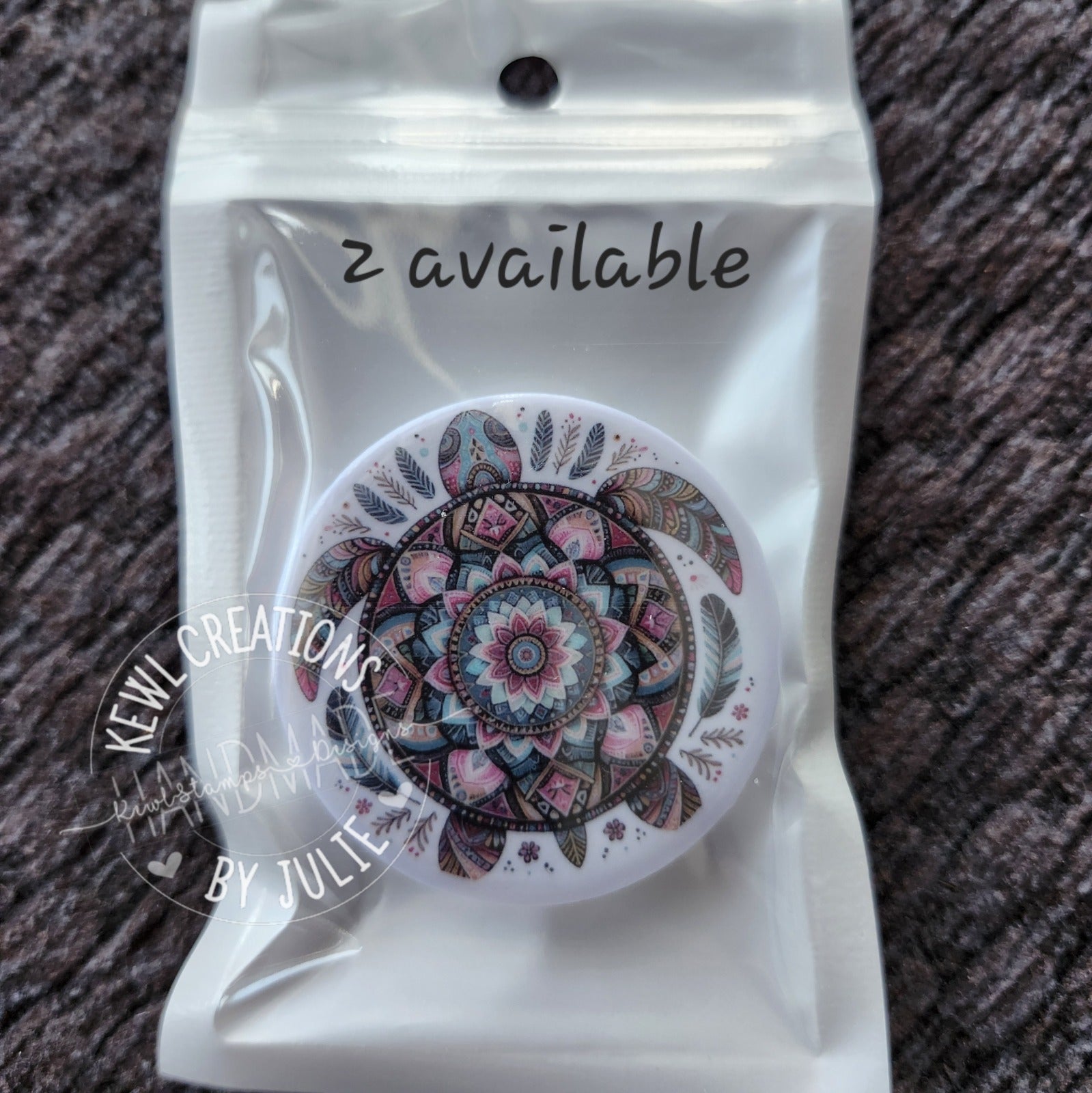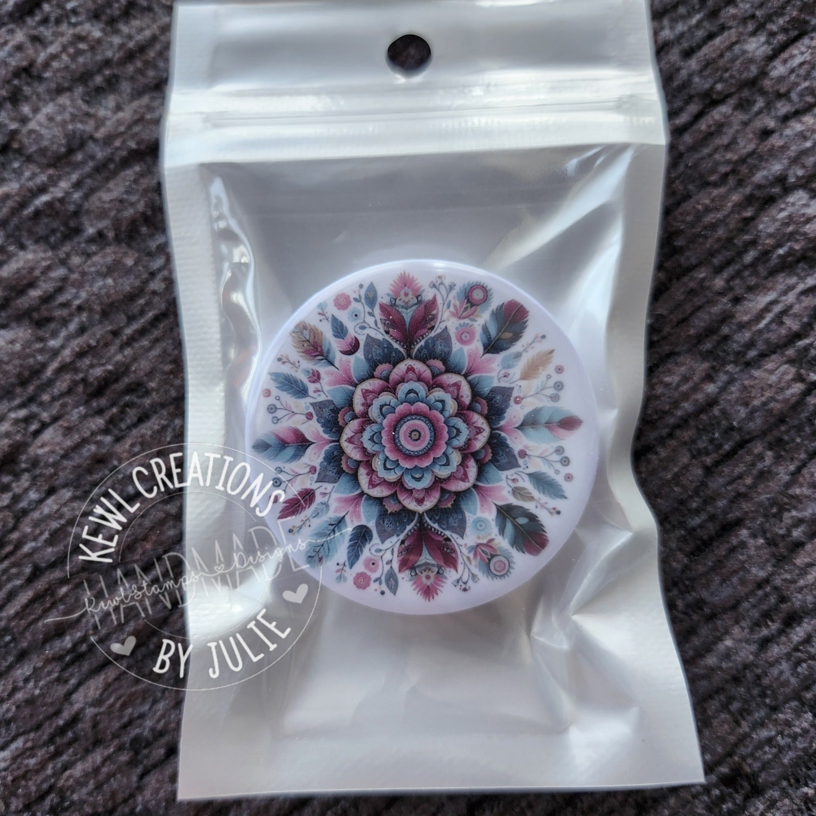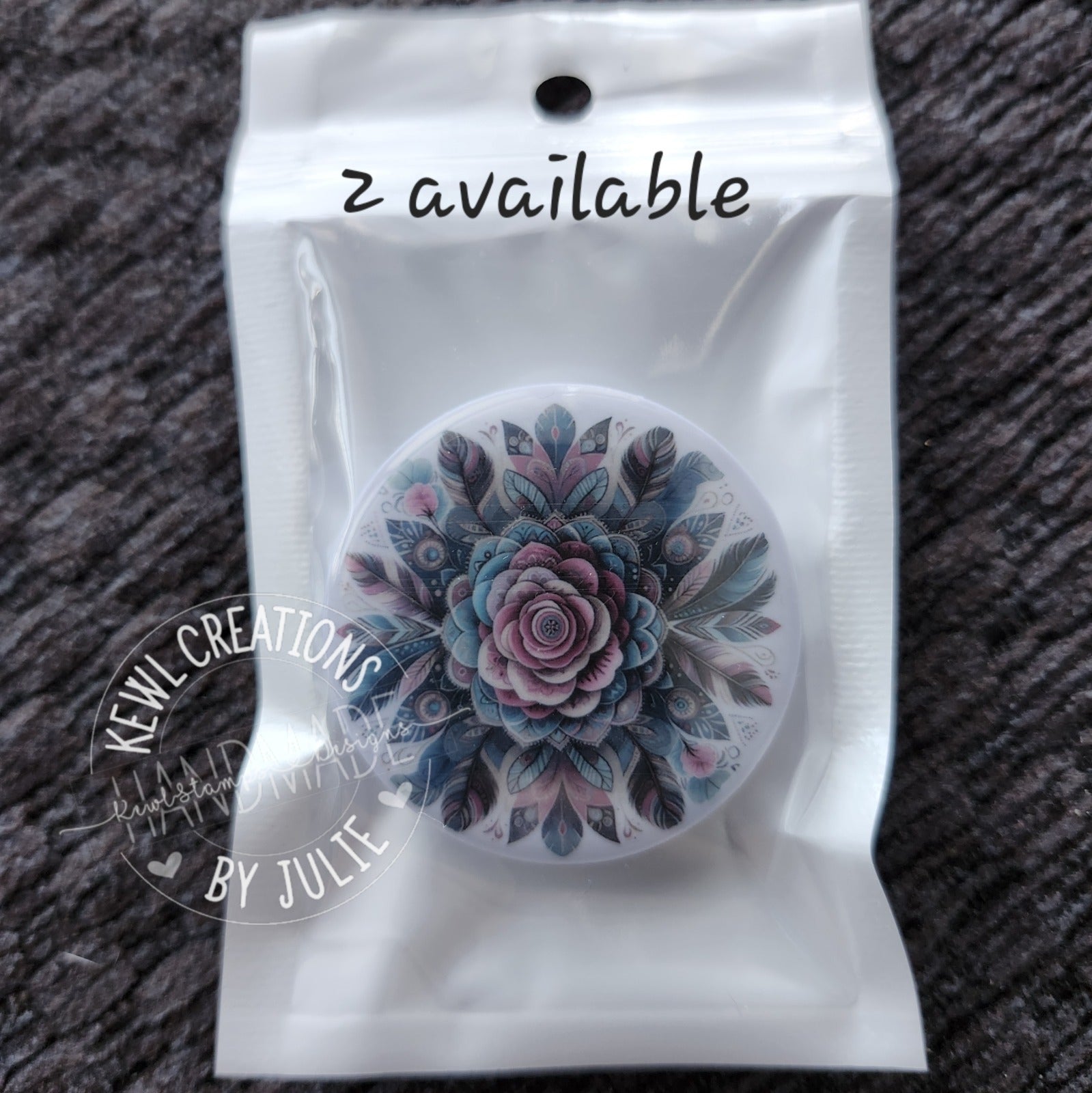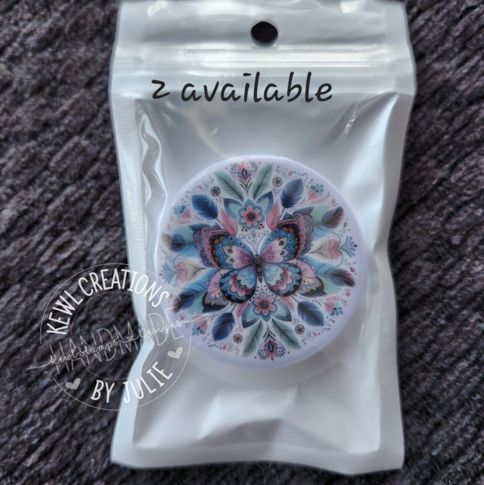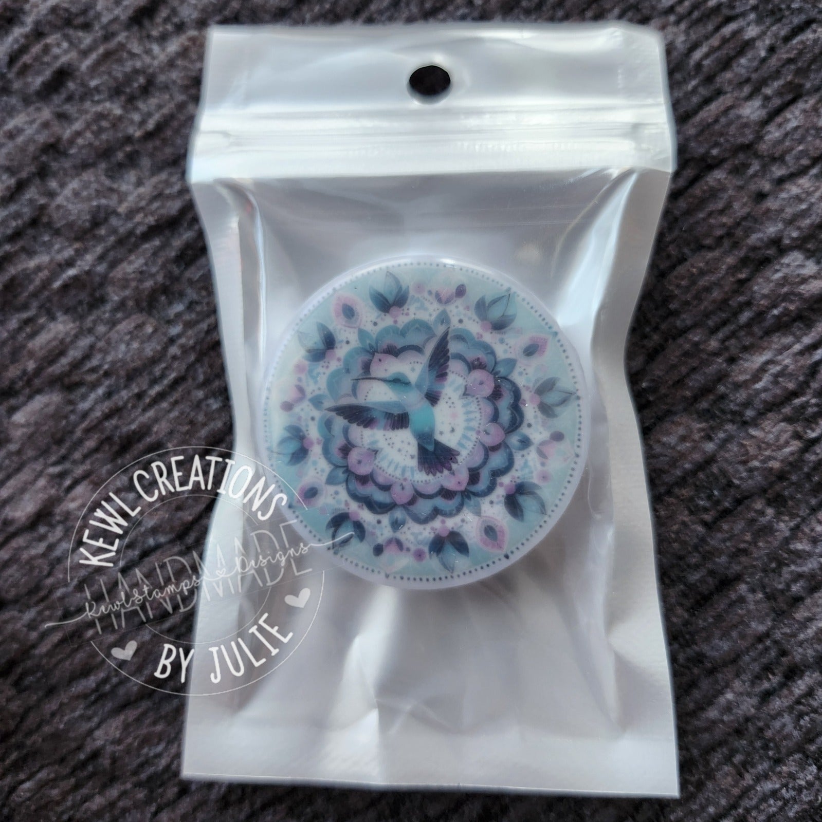 About the phone grip: grips are finished with multiple layers of FDA approved epoxy to ensure fabric, glitter and decal are properly sealed and will remain beautiful for many years of use. I used non branded phone grip with a 3M sticky side. Please make sure your surface is clean before sticking your grip ( once placed on phone do not remove, or sticky part won’t work) keep in mind that the 3M sticky does not stick to certain phone cases