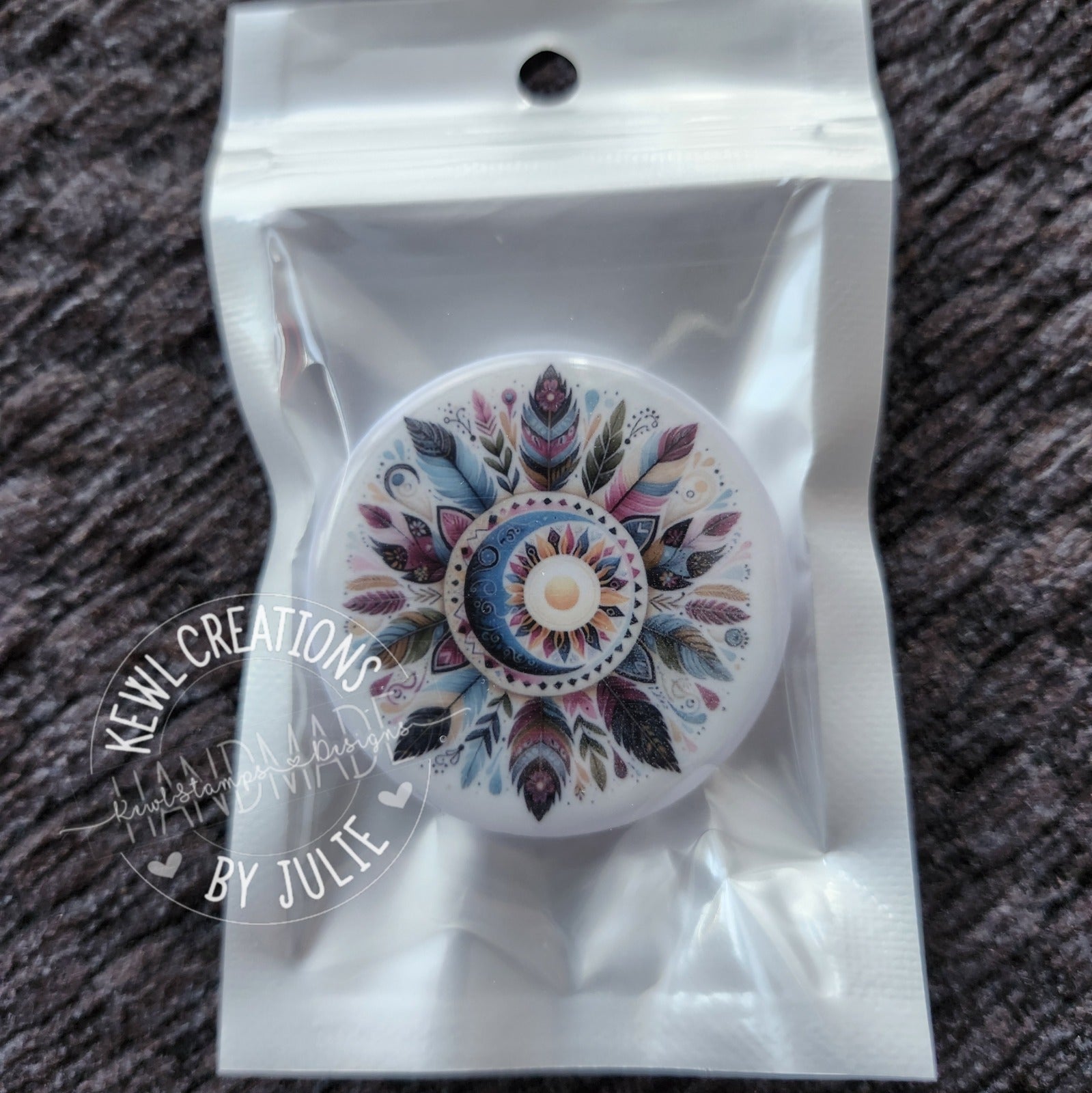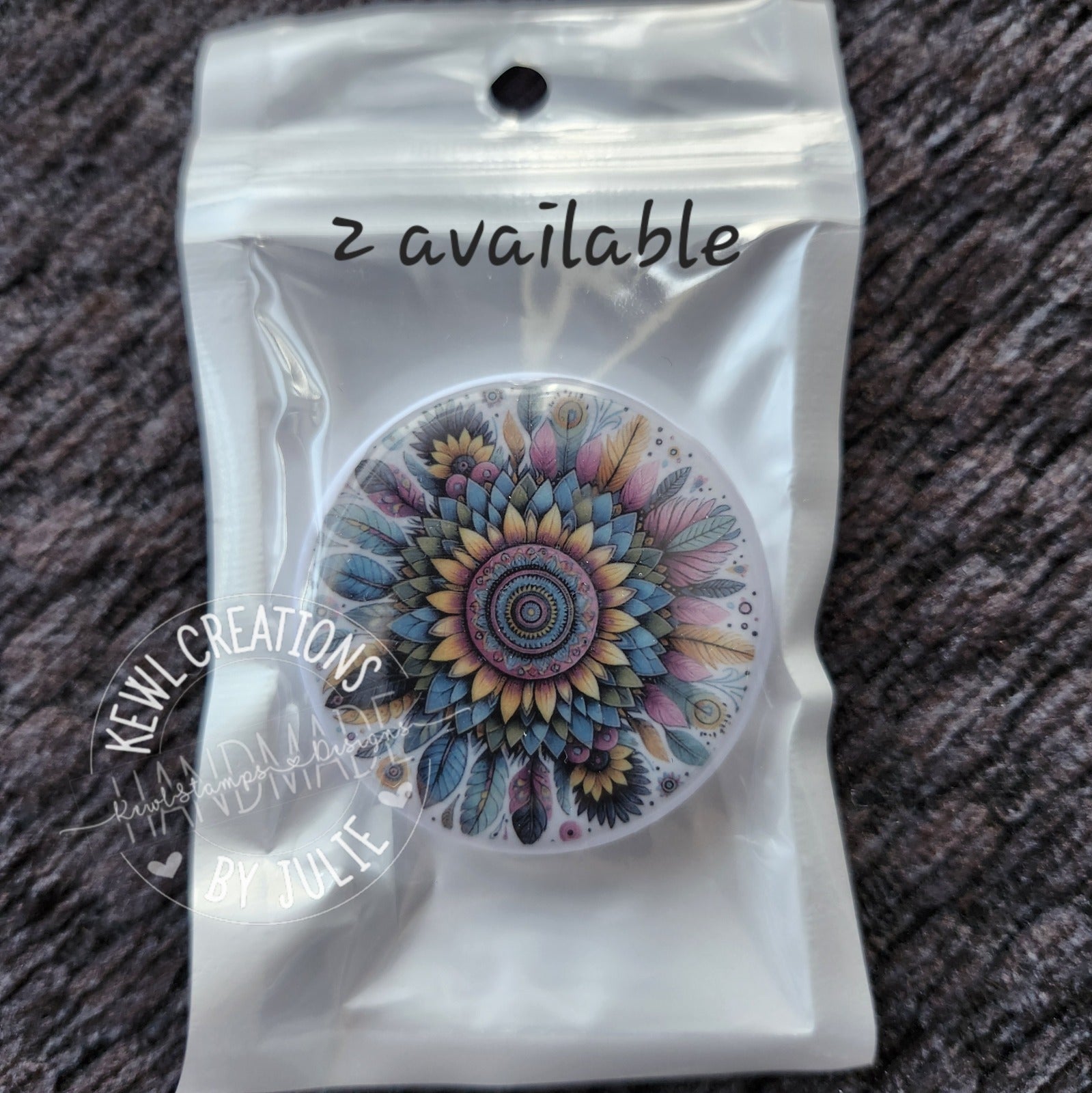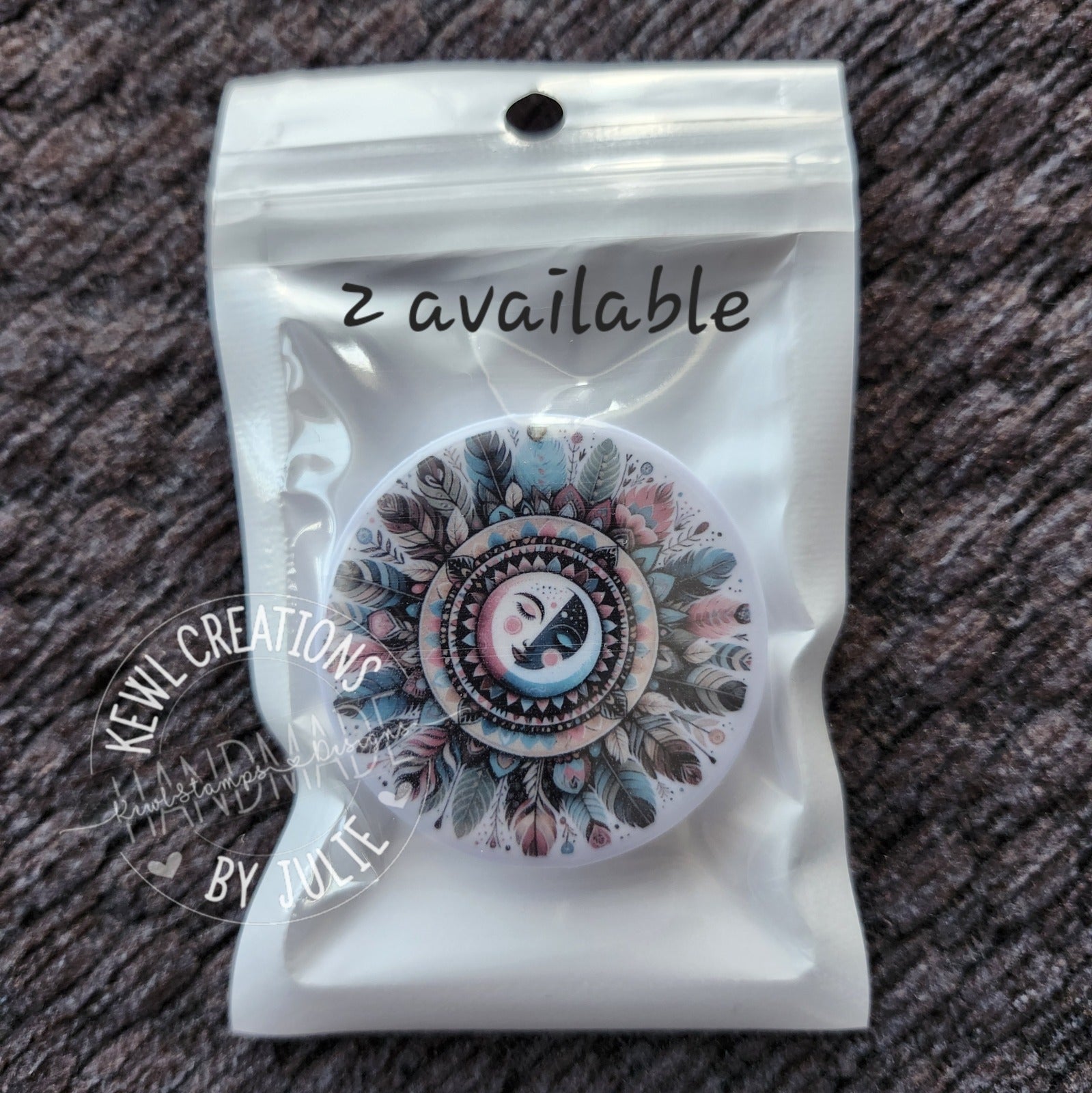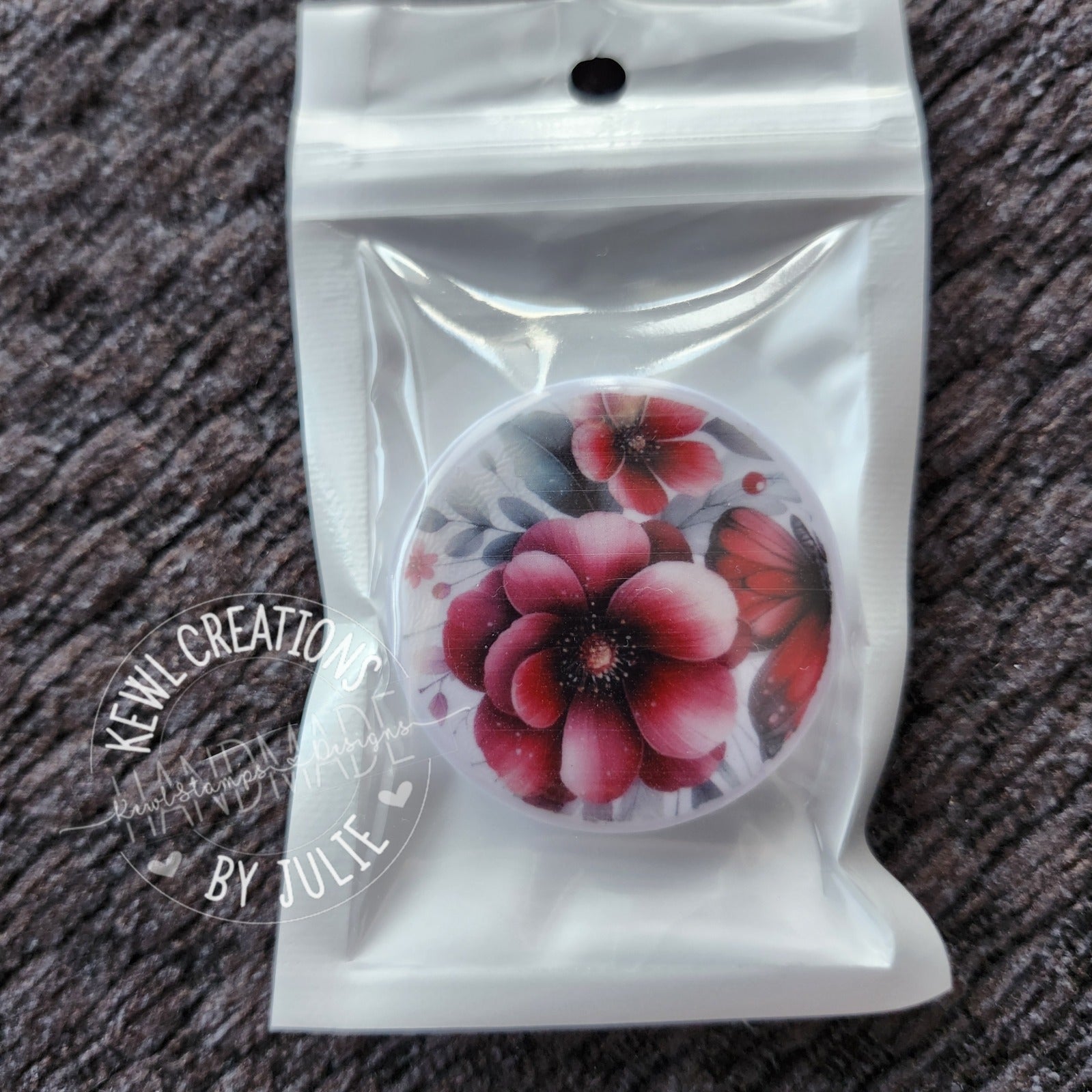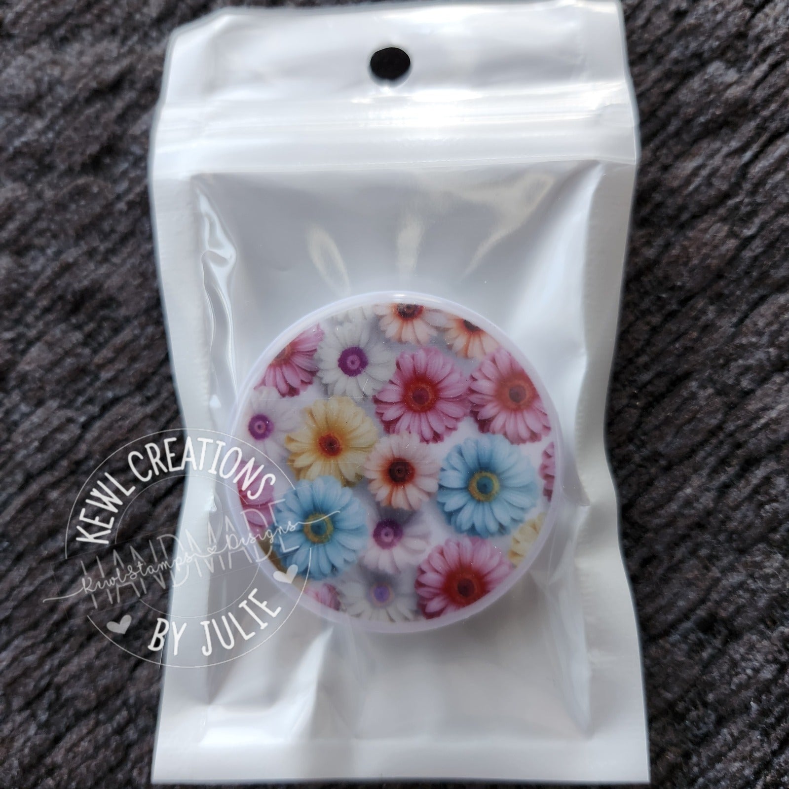 About the phone grip: grips are finished with multiple layers of FDA approved epoxy to ensure fabric, glitter and decal are properly sealed and will remain beautiful for many years of use. I used non branded phone grip with a 3M sticky side. Please make sure your surface is clean before sticking your grip ( once placed on phone do not remove, or sticky part won’t work) keep in mind that the 3M sticky does not stick to certain phone cases