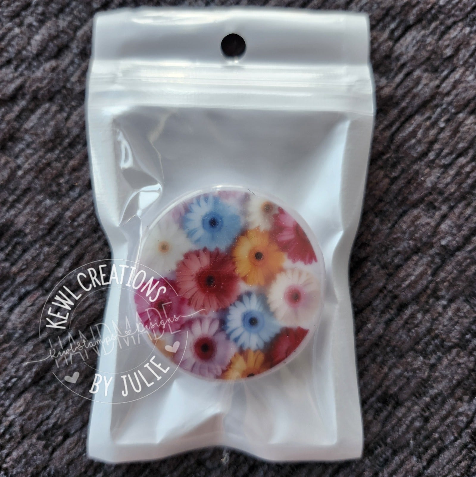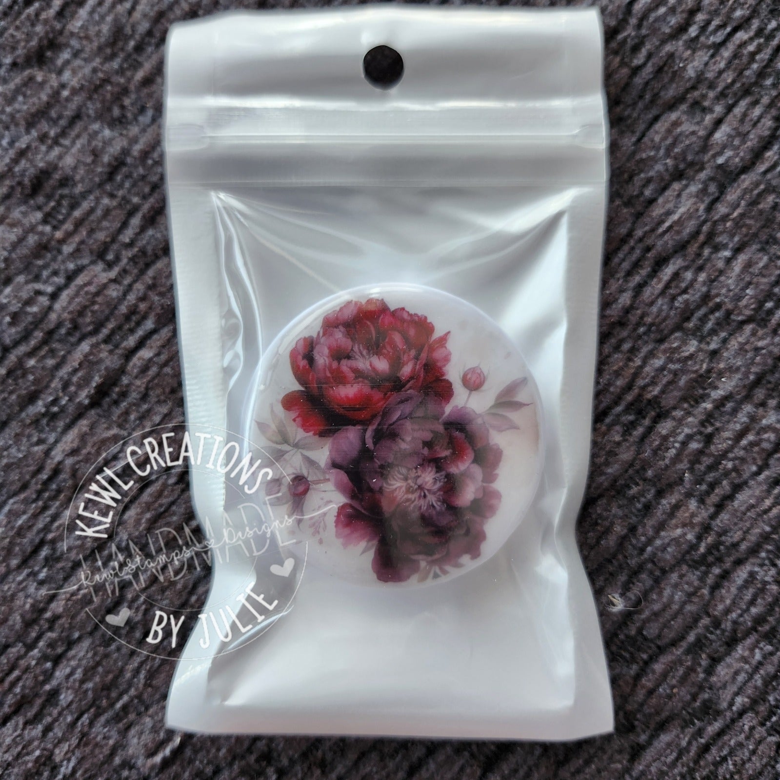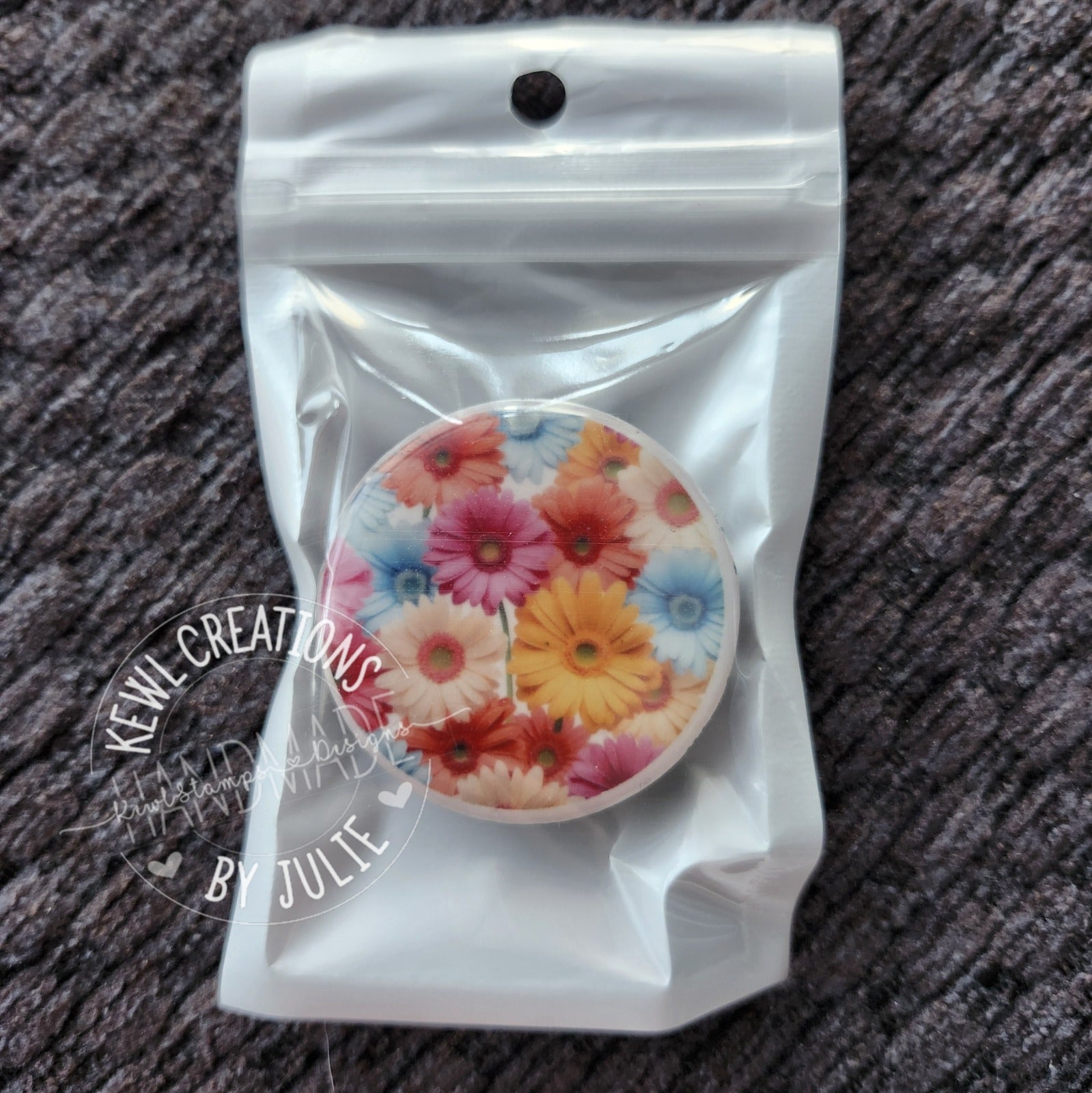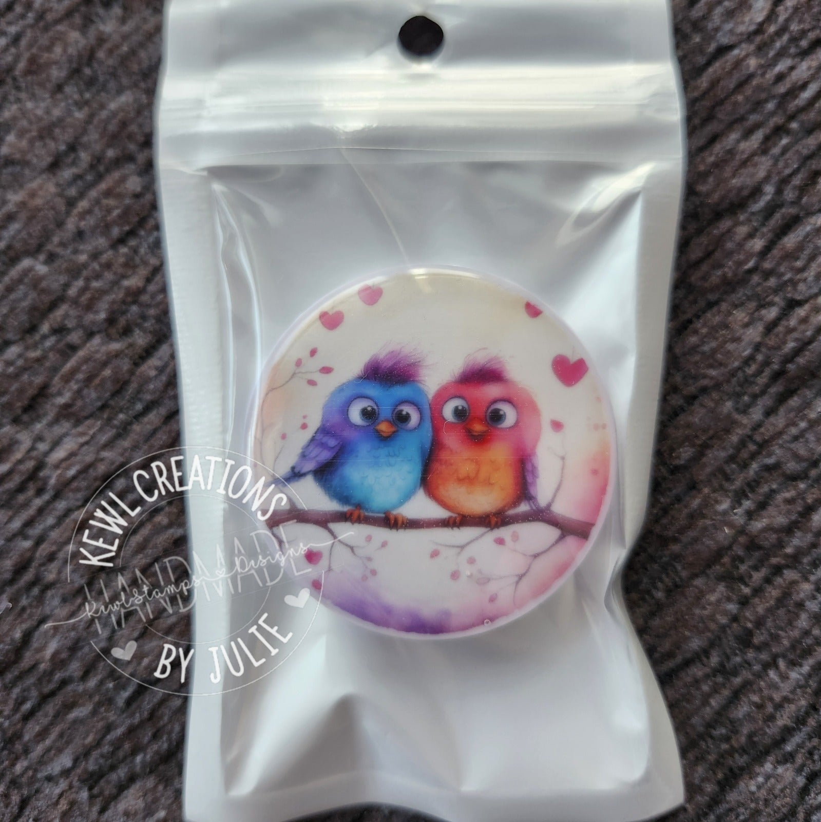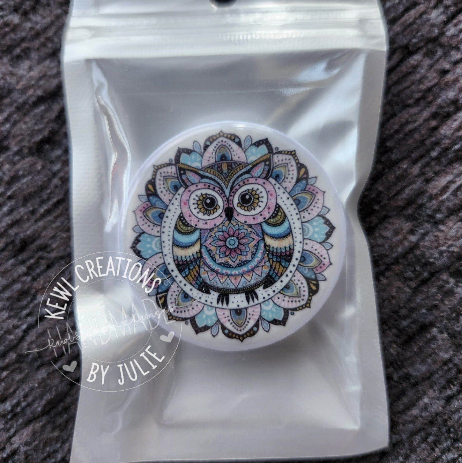 About the phone grip: grips are finished with multiple layers of FDA approved epoxy to ensure fabric, glitter and decal are properly sealed and will remain beautiful for many years of use. I used non branded phone grip with a 3M sticky side. Please make sure your surface is clean before sticking your grip ( once placed on phone do not remove, or sticky part won’t work) keep in mind that the 3M sticky does not stick to certain phone cases