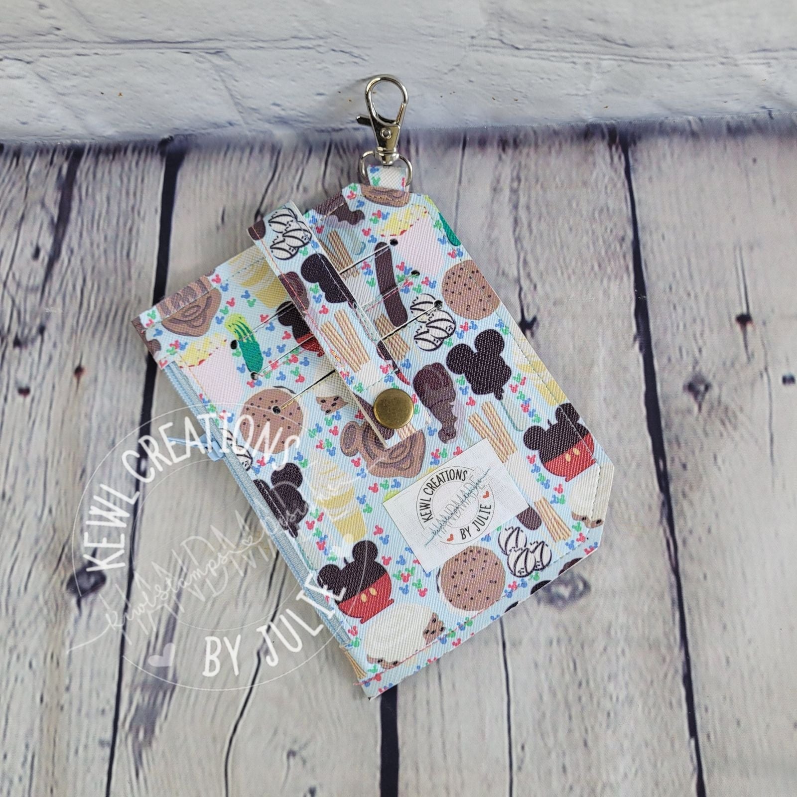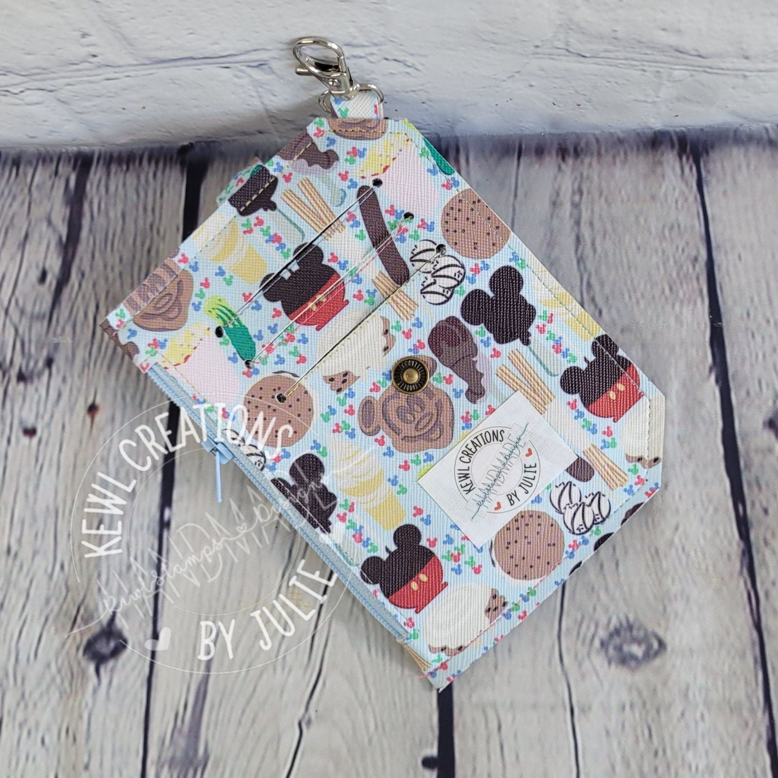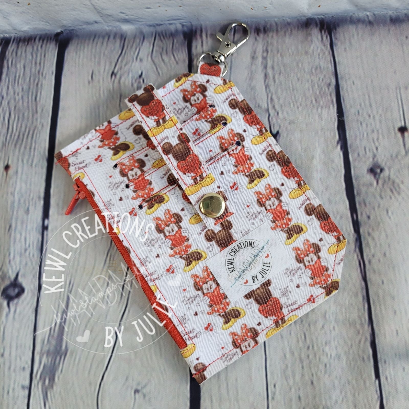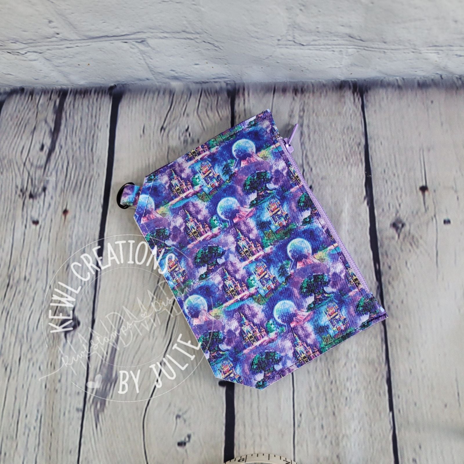 This is a minimalist wallet, pocket pouch. It features 3 card slots with a security snap closure and a zippered main compartment. It also has a clip to hang a key chain from.