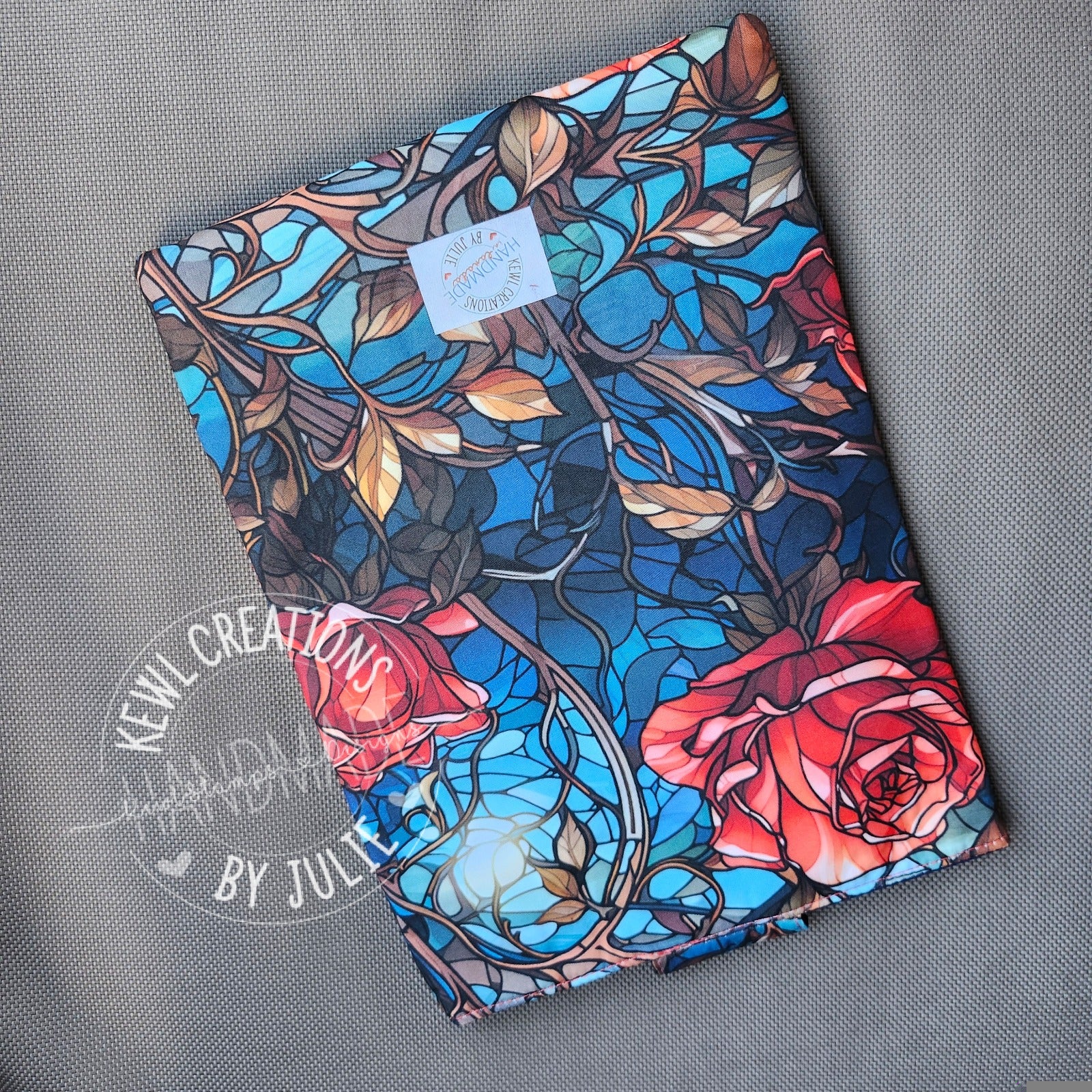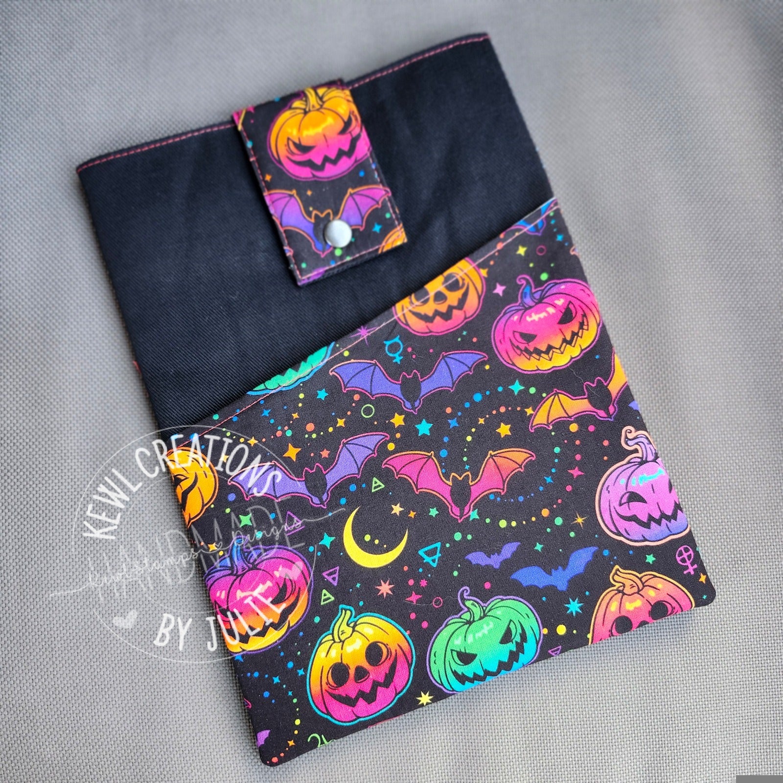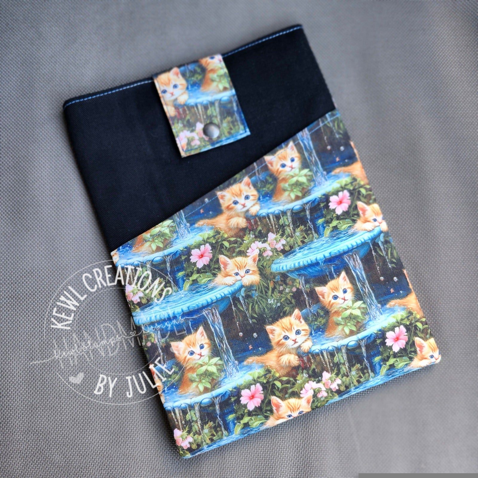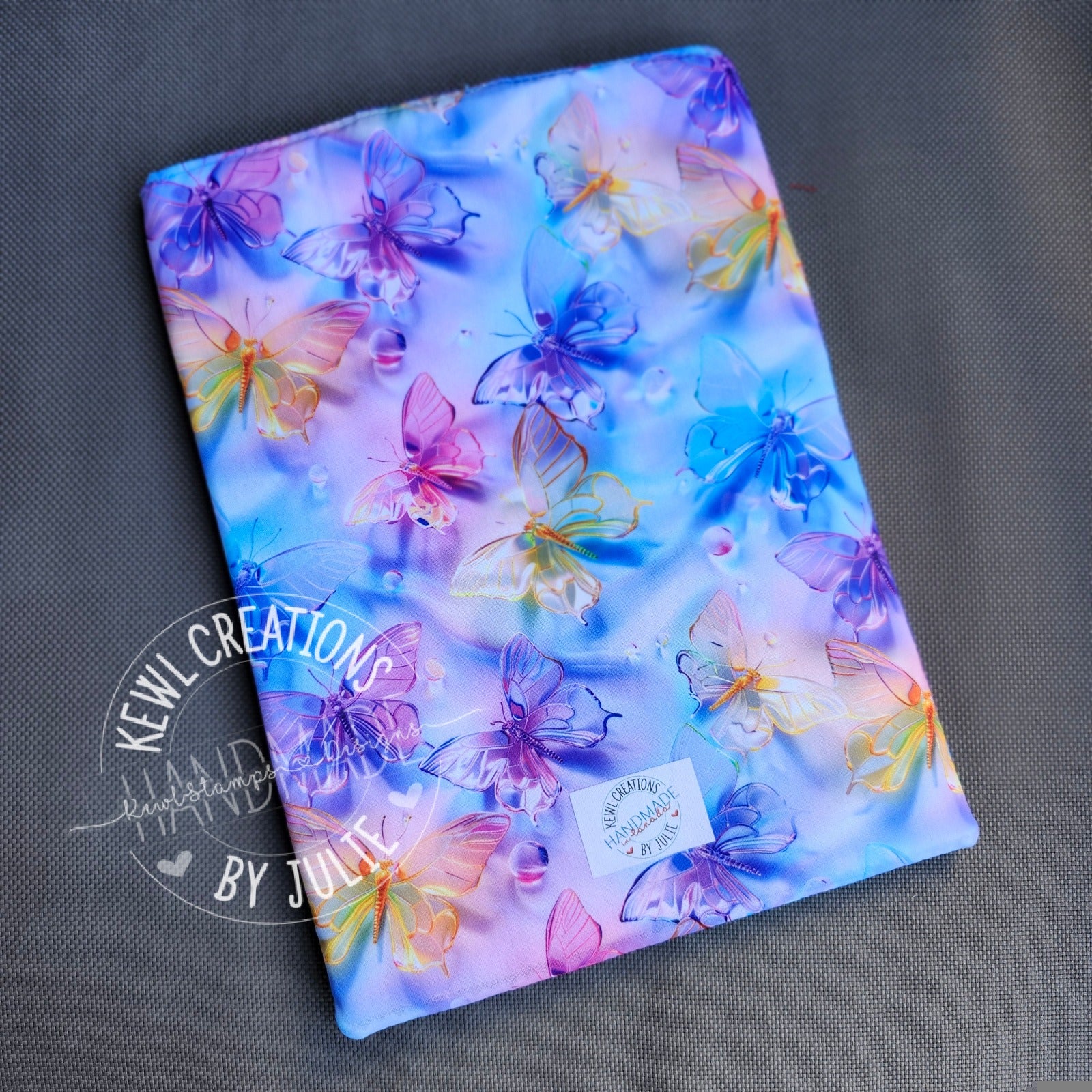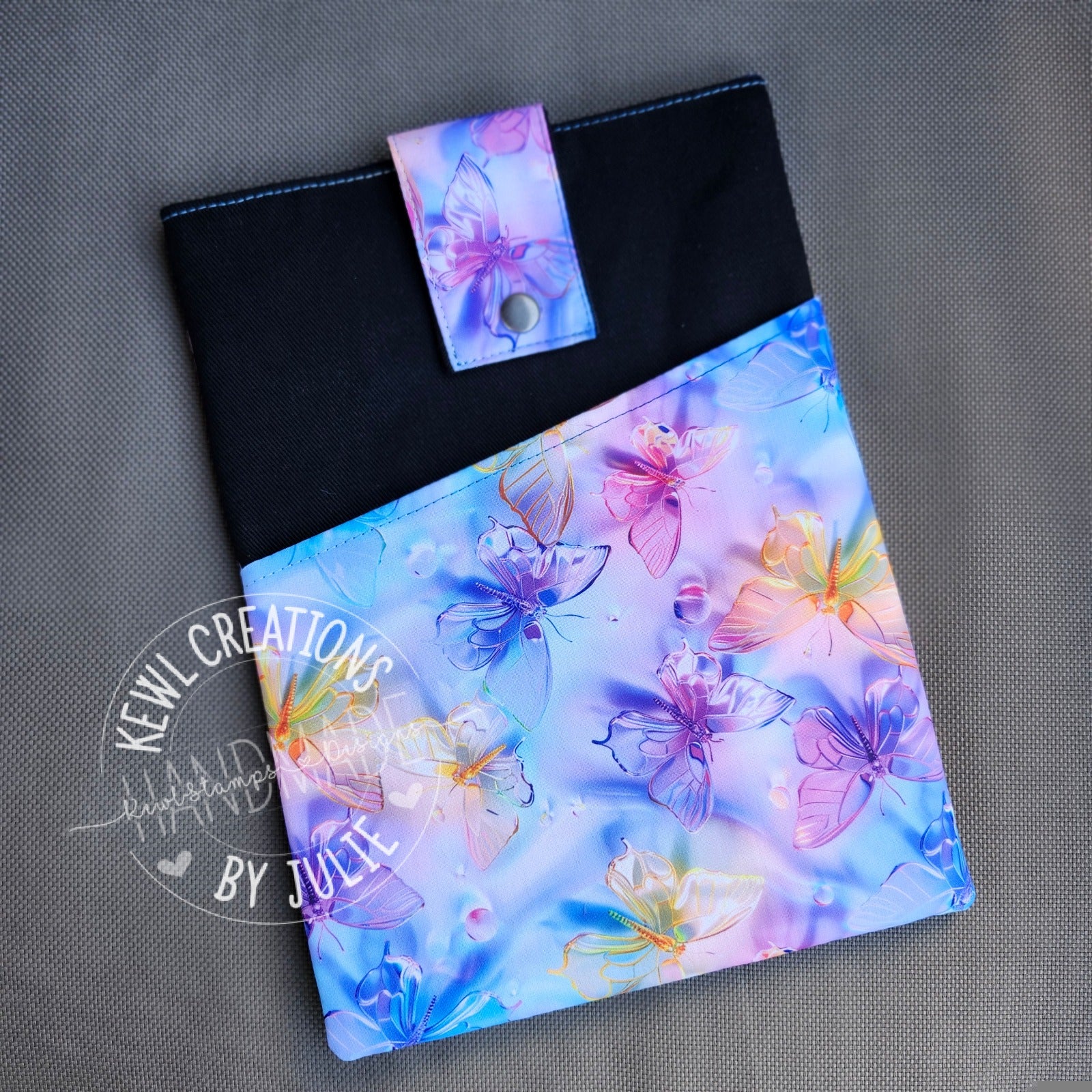 Each book sleeve is made by me, from 100% cotton fabric, and a heavy weight fleece lining. They have a magnetic enclosure.