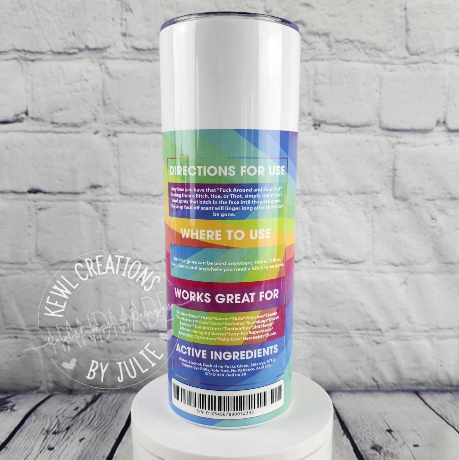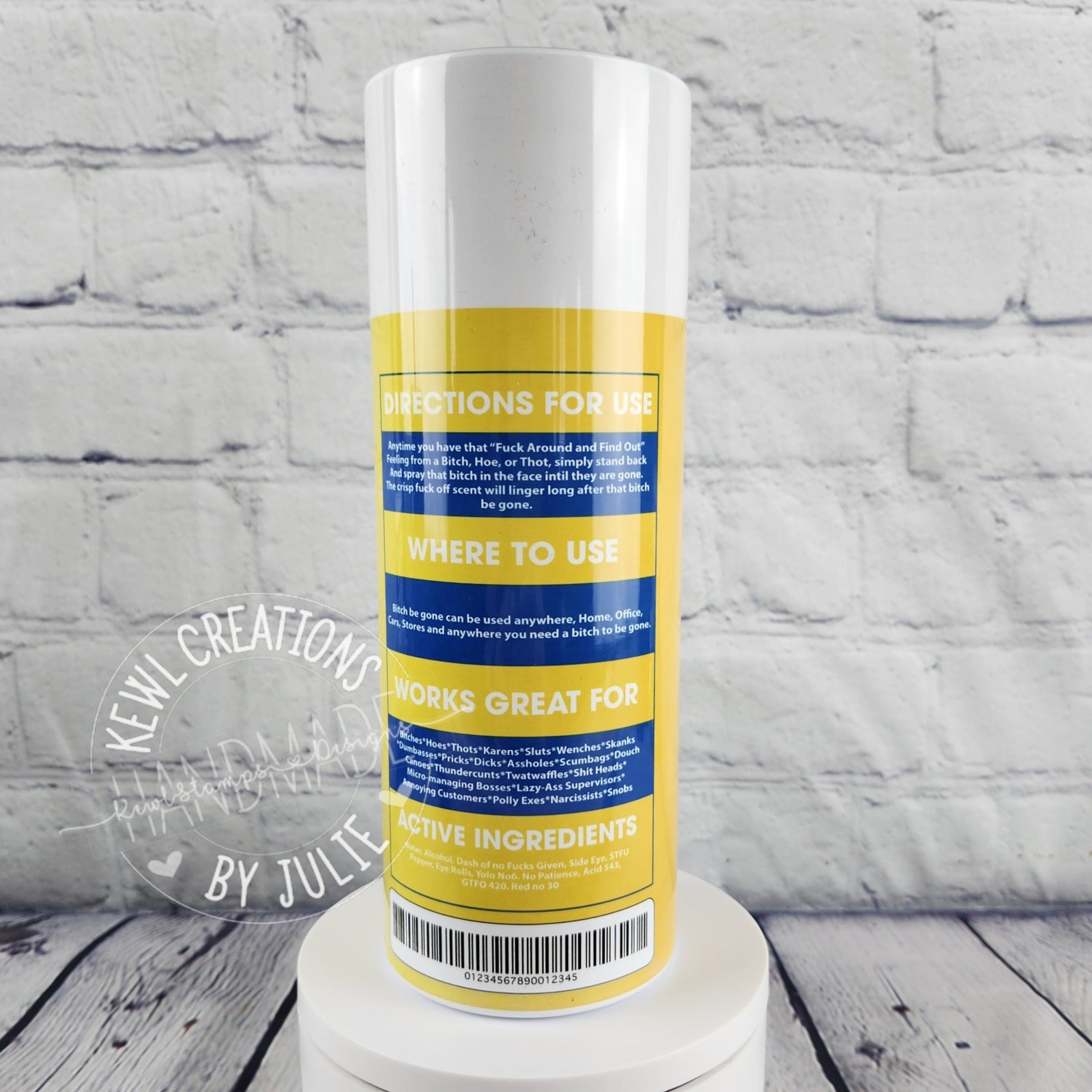 Custom Tumbler - Sublimated "B****, Be gone", 20oz stainless steel tumbler.